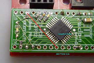 これの注意点は、MCUの足のパッドから、ランドまでのメッキ線が短いのでハンドゴテを長くあててるとすぐパッド側も溶けてしまうので、その半田技術は要求される。